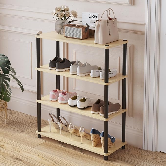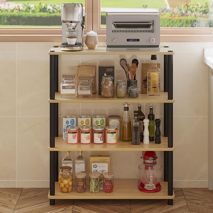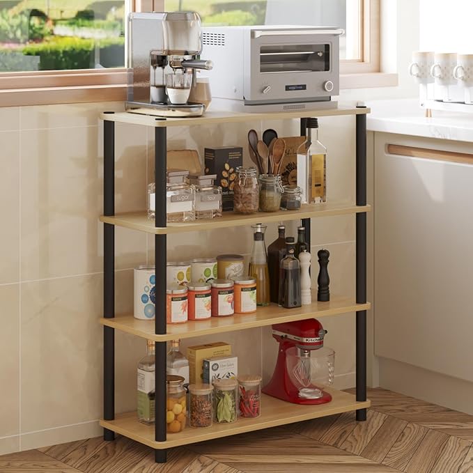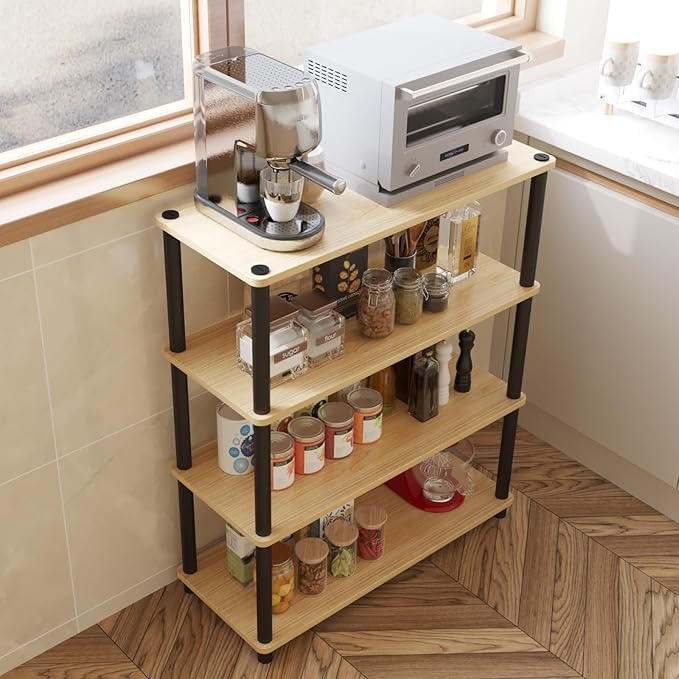 HOME CUBE Engineered Wood,Plastic 4-Tier Standing Shelf,Kitchen ,Open Display ,Multipurpose Storage Rack,Bookshelf,Shoe Rack,Oven/OTG/Toster/Coffee Machine Rack Stand,Standing Shelf,73x30x89cm
